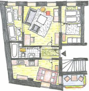 Grundriss (im Bad wurde zwischenzeitlich anstelle der Badewanne eine moderne Duschanlage installiert)